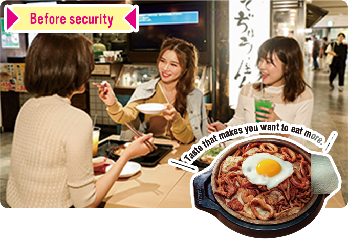 ADDRESS : After security, Terminal 1 Building 3F International Gate Area | TEL : 072-455-3582 | HOURS : 7:00–24:00(L.O.23:30)